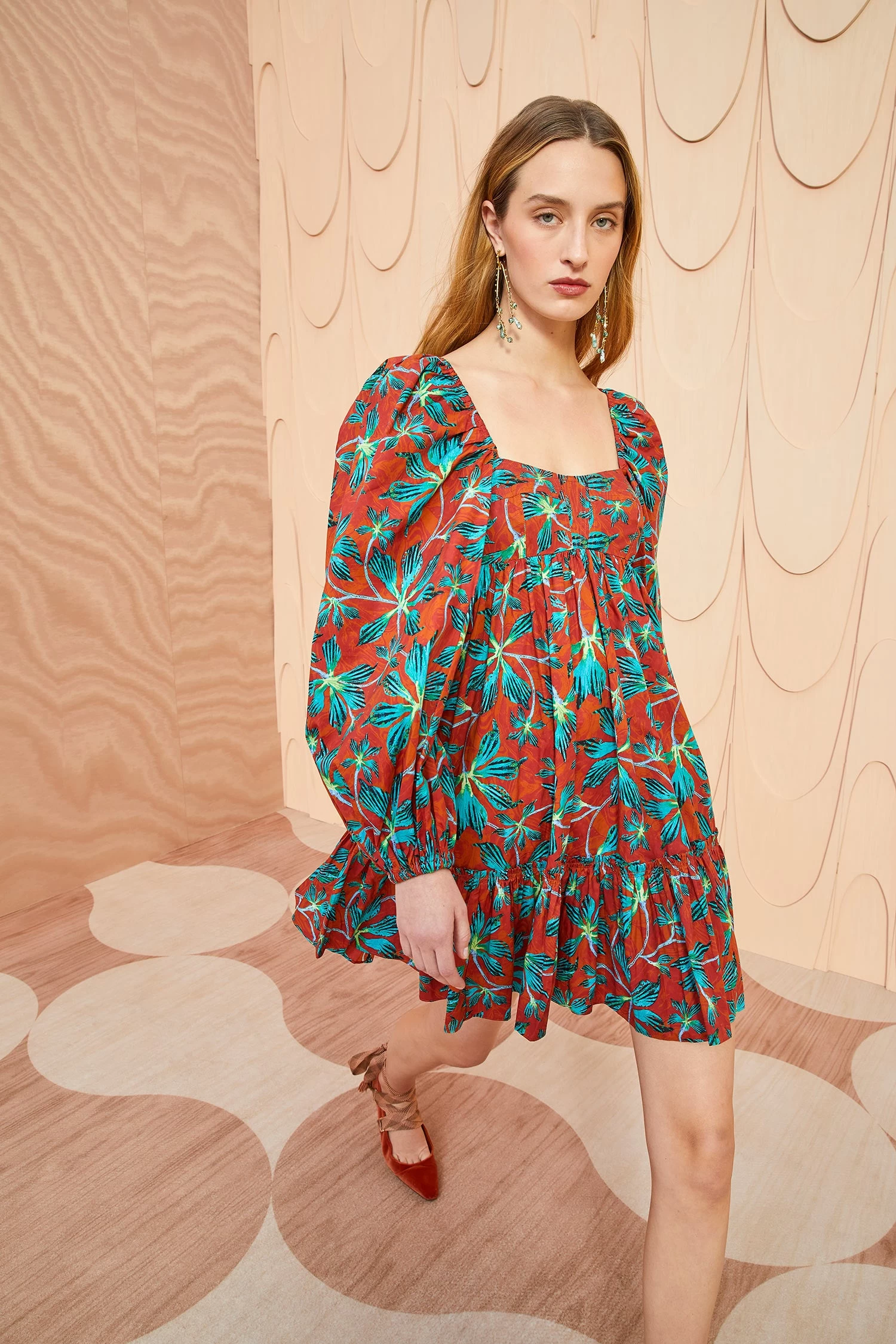 Crafted from our signature cotton poplin, the Alita Dress boasts a vibrant moonflower print with surreal turquoise and lime blooms set against a swirling background. This mini dress features voluminous long sleeves, an empire waist, side slit pockets, and a gathered hem. It is finished with a hidden center-back zipper.