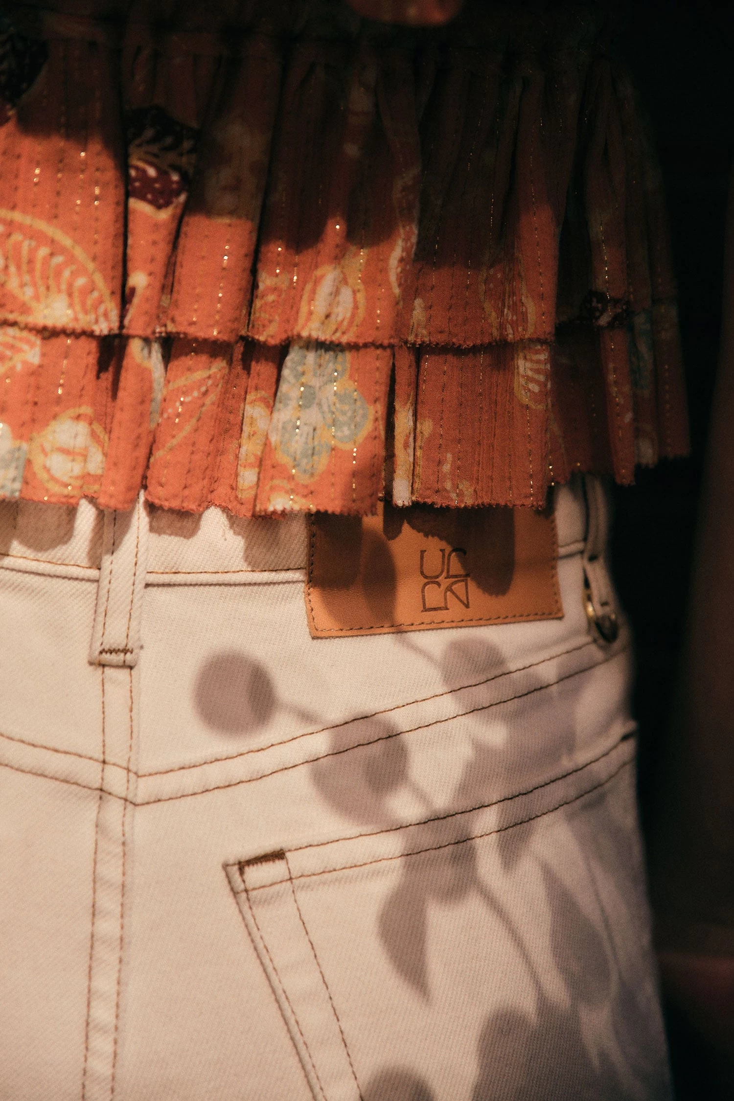 Our favorite Daphne jean returns in a crisp white wash. This skinny boyfriend silhouette is cut from rigid, non-stretch denim and features a relaxed fit and low-rise waist. It is adorned with our signature leather logo-embossed waistband patch and a hand-hammered ring on the back belt loop. Handmade with sustainable practices in Los Angeles.