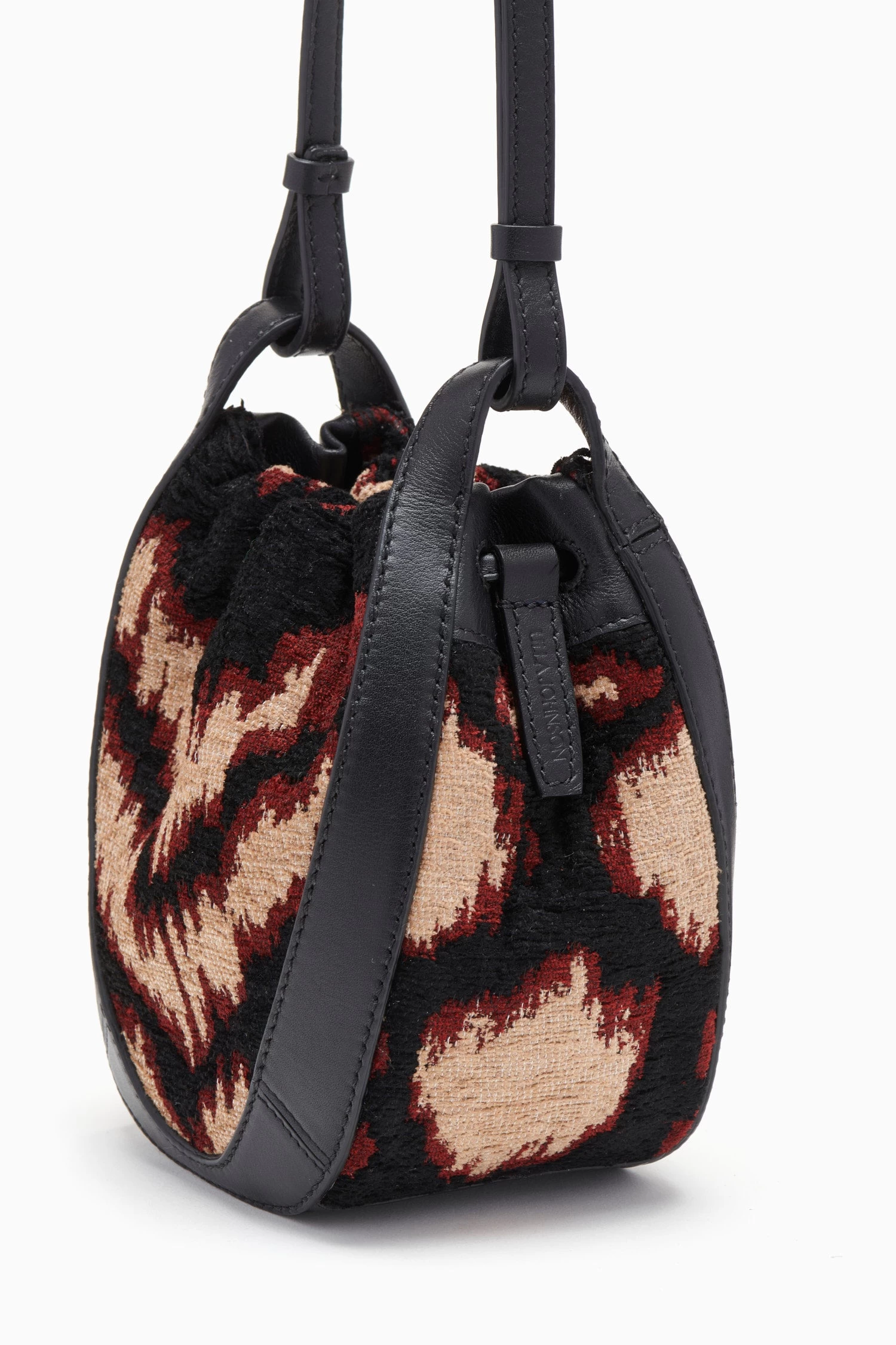 The Lee Pouch is a mini crossbody silhouette crafted in Italy from jacquard in a vibrant obsidian and cream motif that mirrors our ready-to-wear collection. Framed by supple leather, this drawstring-style bag features an adjustable crossbody strap and an internal pocket to fit your everyday essentials.