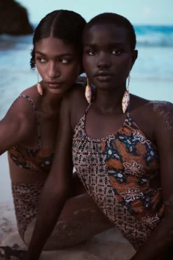 The Lina Coverup is a breezy silhouette made from a lightweight cotton blend. Crafted in this season’s stunning blue, yellow and navy prismatic print, this coverup features a ruffle flutter sleeve and a split neckline. Finished with a braided tassel tie detailing. Pairs perfectly with any of our swim in Constellation.
