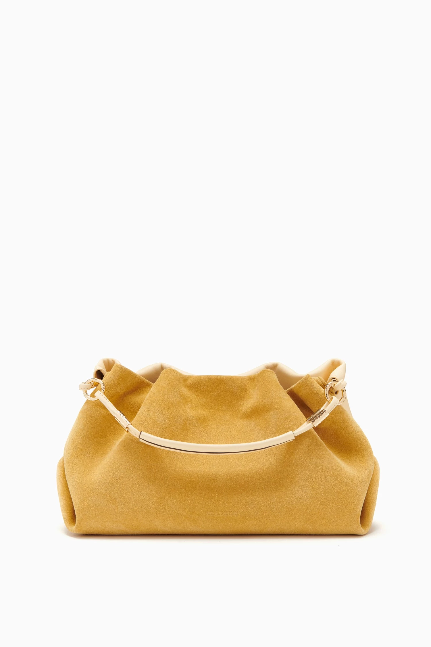 The Remy Soft Convertible Clutch has been reimagined in a stunning yellow hue. This handbag features two distinct sides: one made from soft calfskin leather and the other made from luxurious suede. This slouchy silhouette has soft folds at either side and can be worn as a clutch, shoulder bag, or crossbody. It is finished with shiny brass detailing at the base of the strap.